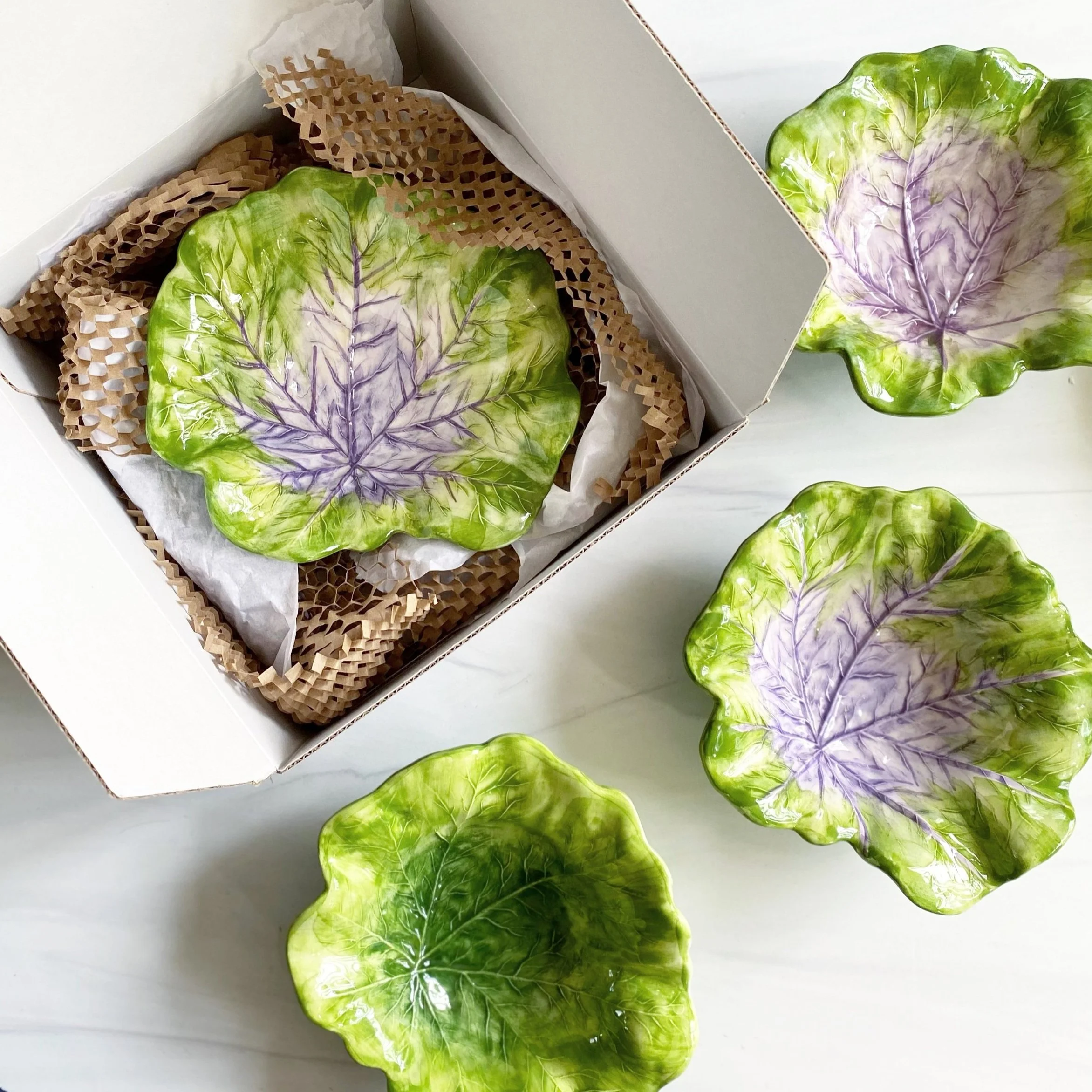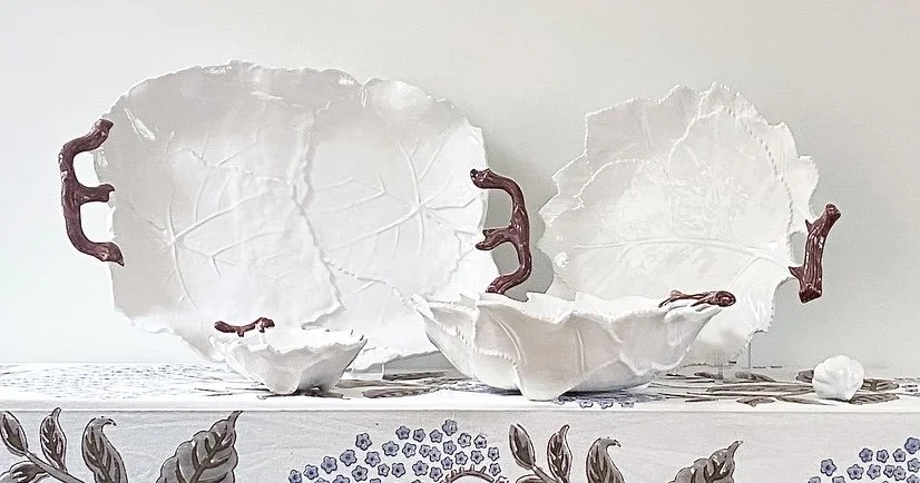 Lush greens, layered textures, and the unmistakable charm of hand-painted leaves. A celebration of nature’s quiet beauty and artisanal tradition, made to layer beautifully across seasons and tables.